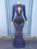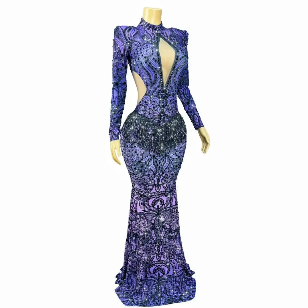 Sexy High-end Purple Shining Rhinstones Fringes Trim Fit Dress Evening Red Carpet Gowns Fashion Show Photoshoot Stage Outfit