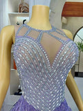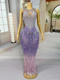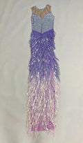 Sexy Luxurious Birthday Celebrate Rhinestones Fringes Dress Sleeveless Purple Pink Tassels Sequins Photoshoot Collections