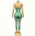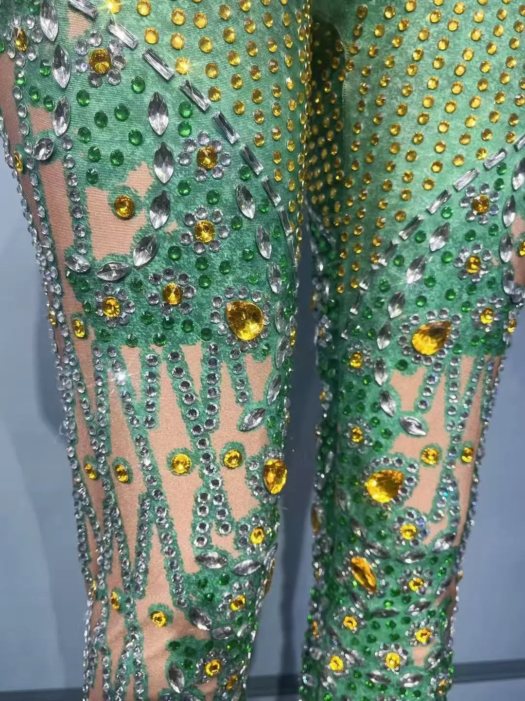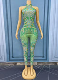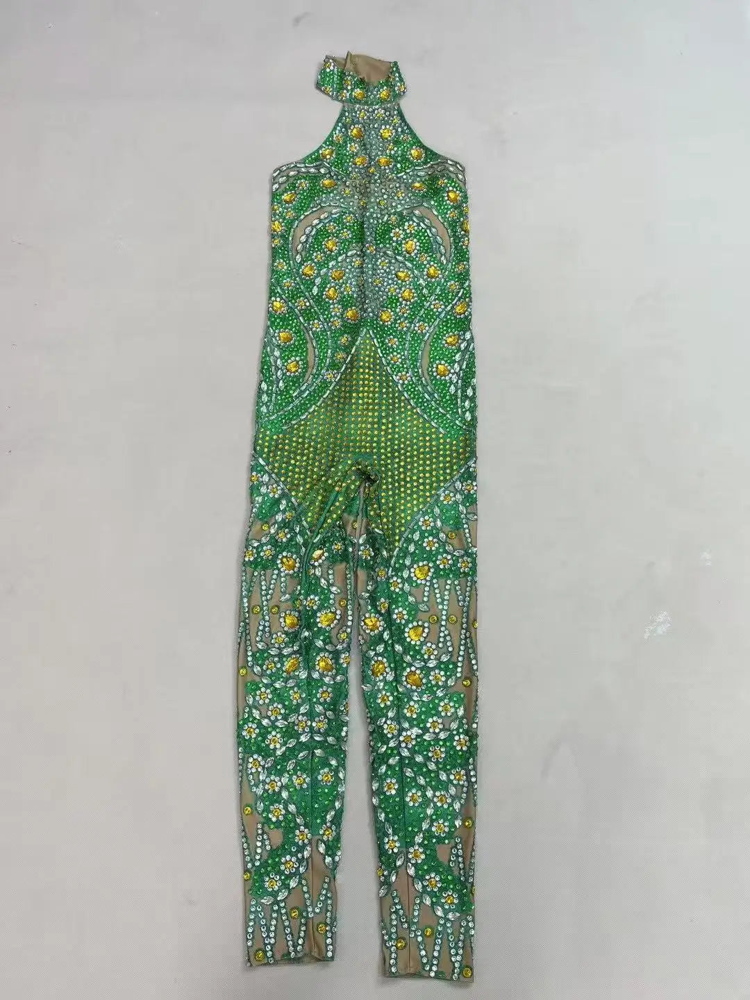 Sexy Luxury Designed Sparkly Rhinestones Jumpsuit Party Celebrate Show Fashion Outfit Singer Dancer Performance Stage Costume