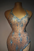 Chic Crystal Embellished Halter Neck Evening Gown for Glamorous Parties and Prom Nights
