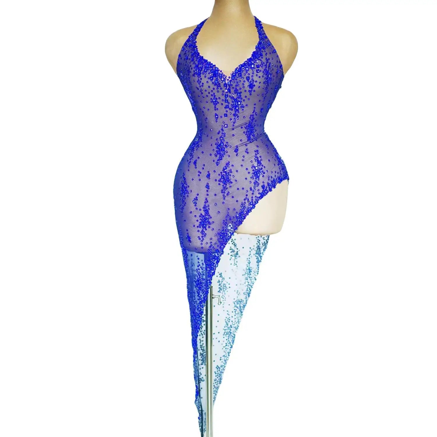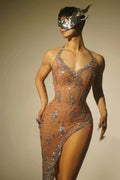 Sexy Luxury Sleeveless Rhinestones Evening Dress New Fashion Female Formal Banquet Party Prom Gowns robes de soirée Xinghe