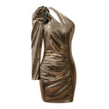 Step out in style with this sexy one-shoulder dress, designed with a trendy European flair and eye-catching hot stamped details. This casual yet elegant slim fit party dress offers both comfort and sophistication, making it the perfect choice for women’s plus size occasions, from casual outings to special events. Flaunt your curves and exude confidence in this versatile and fashionable dress.