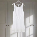 Sexy Pearl Knitted Short Strap Dress Women Slim Hallow Out Sleeveless Backless Lace Up Beach Dresses Summer Holiday Robe