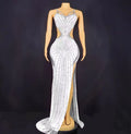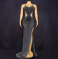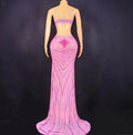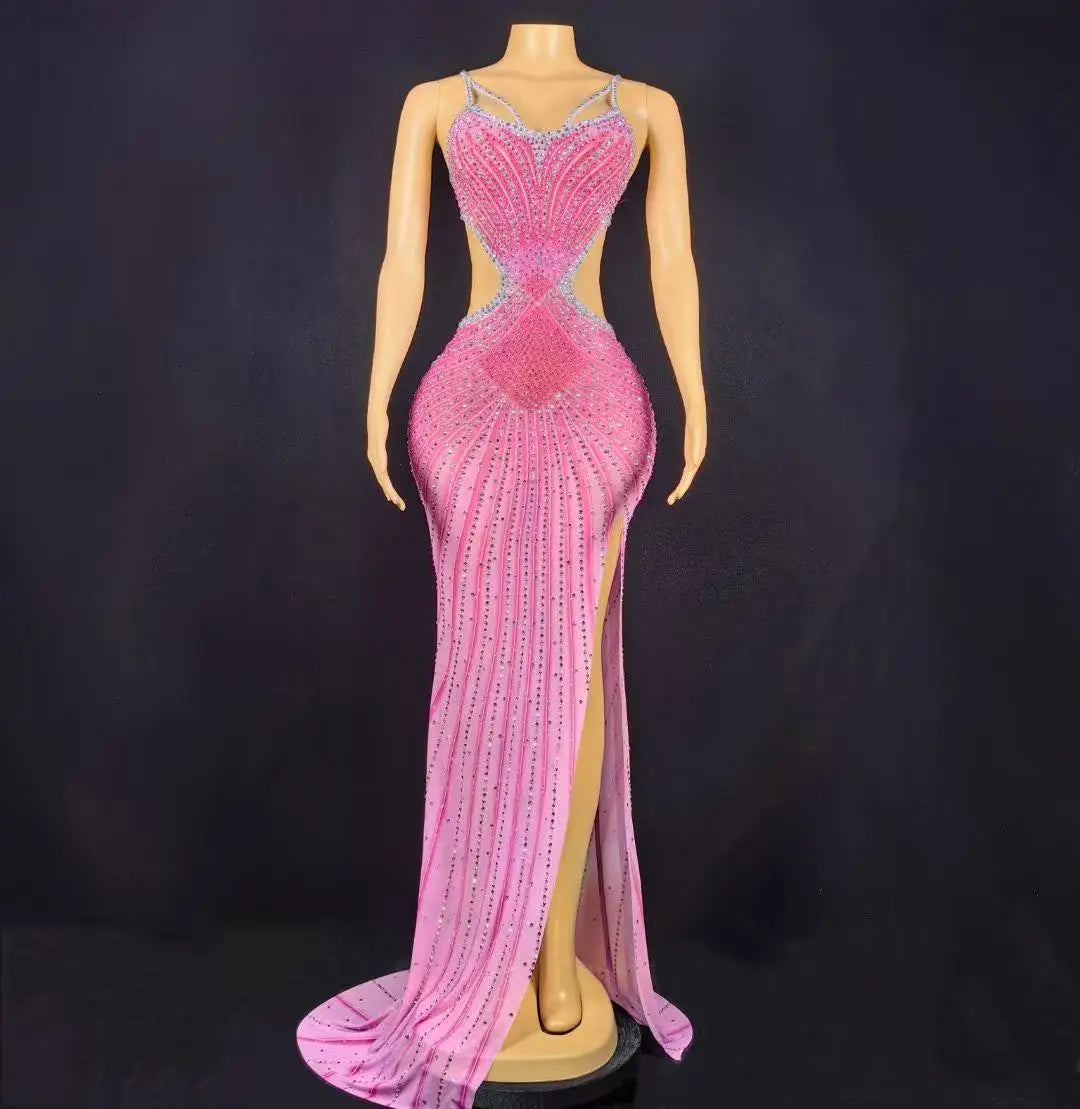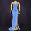Sexy Pink Blue Sparkly Rhinestones Supenders High Split Backless Dress Women Evening Prom Gown Red Carpet Stage Photoshoot Dress