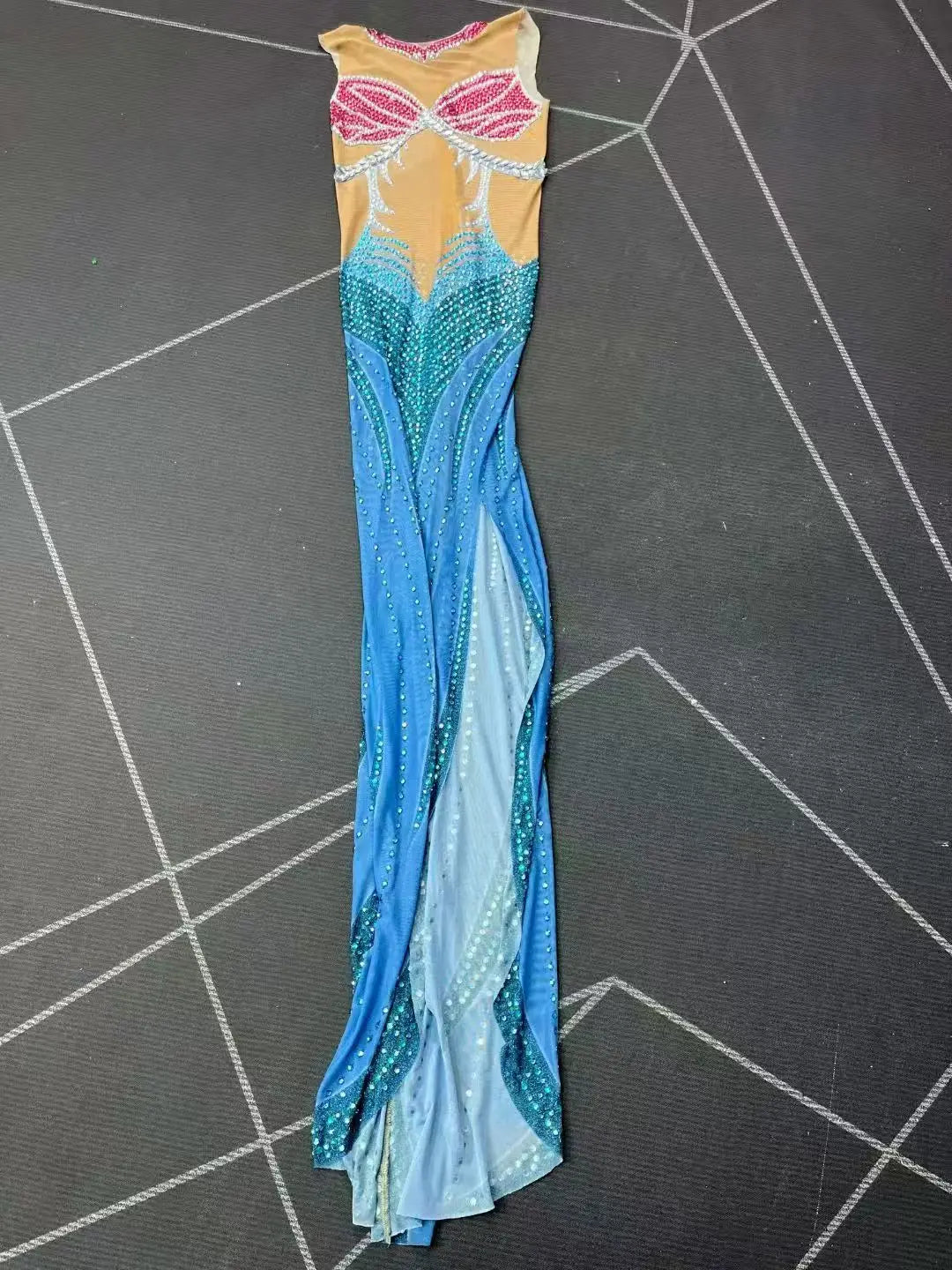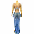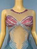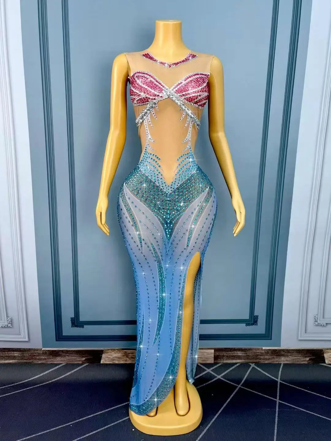 Sexy Shining Rhinestones Trim Fit Maxi Dress Women Birthday Wedding Party Celebrate Evening Gown Red Carpet Stage Costume