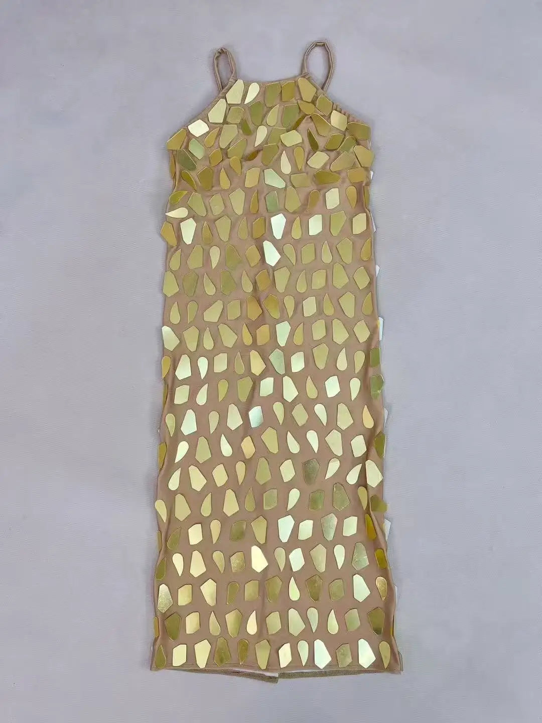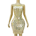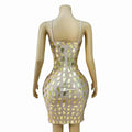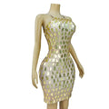 Sexy Shiny Gold Mirrors Trim Fit Suspenders Dress Women Daily Birthday Celebrate Cocktail Party Club Costume Show Stage Outfit
