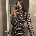 Sexy Shiny Sequins Short Dresses Female Glitter Flaer Sleeve Slim Hollow Out Mini Dress Sparkling Club Party Outfits High Street