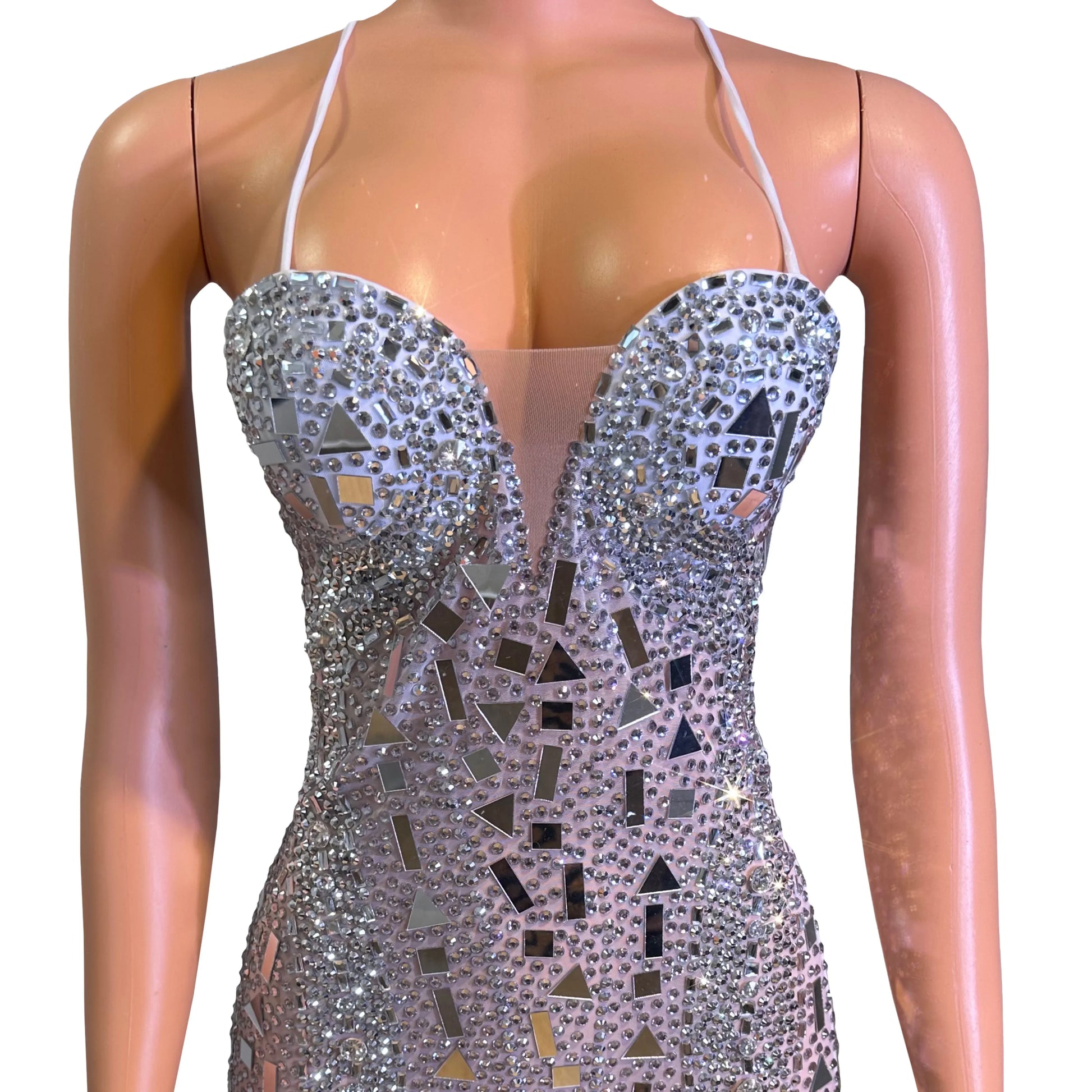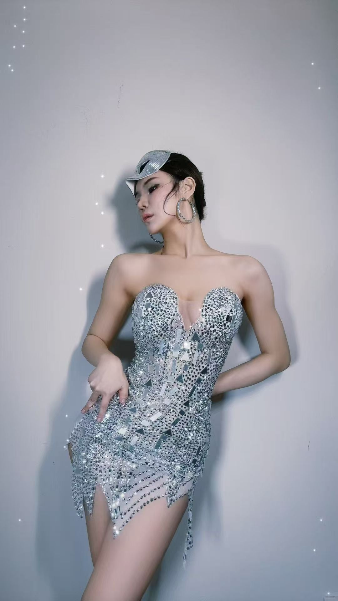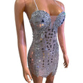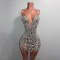 Sexy Singer Bar Nightclub Stage Wear Club Party Birthday Cocktail Show Costume Silver Mirror Rhinestones Tight Short Dress
