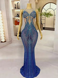 Sexy Stage Handmade Sparkly Rhinestones Elegant Mermaid Dress Women Birthday Evening Prom Gown Show Red Carpet Stage Costume