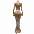 Make a breathtaking entrance in this Sexy Stage High Grade Blue Sparkly Dress — a couture-inspired gown designed to translate light, movement, and glamour into show-stopping presence. Crafted with high-grade rhinestones, mirror accents, and delicate mesh insets, this dress elevates eveningwear, prom looks, red-carpet appearances, and performance costumes with a modern, seductive edge.