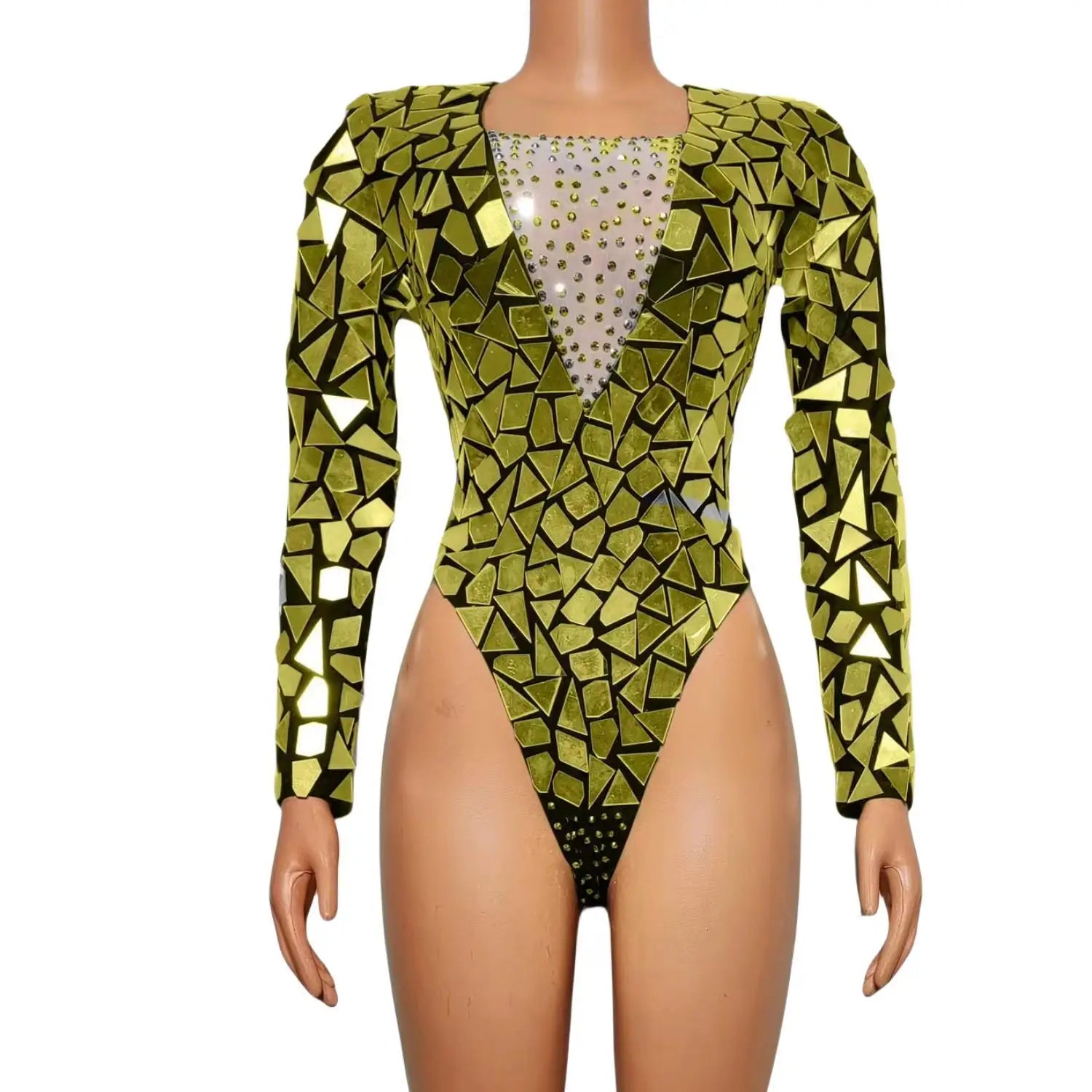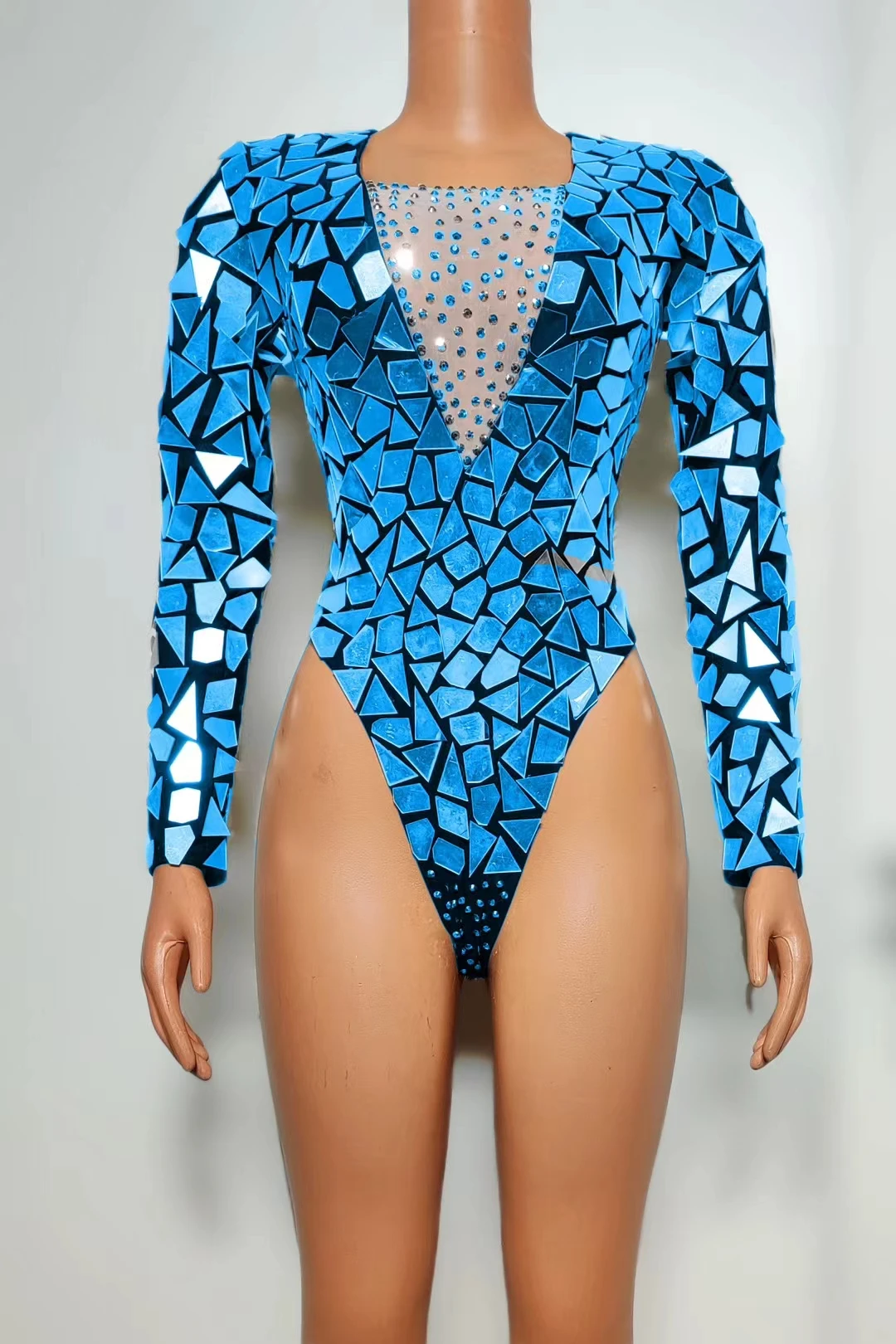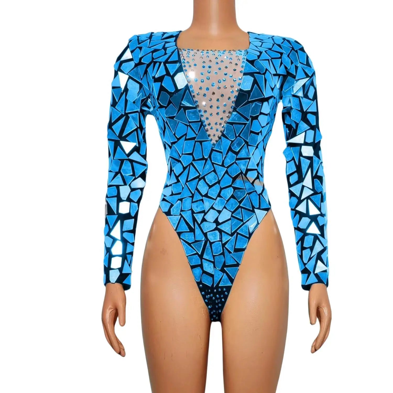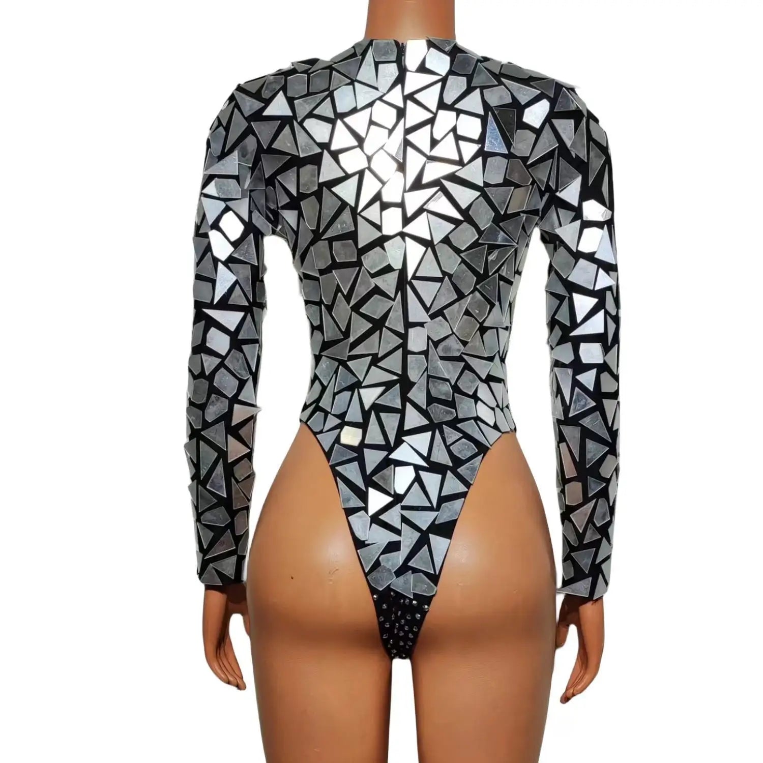 Sexy Stage Rhinestones Mirrors Bodysuit Women Birthday Celebrate Party Outfit Singer Dancer Show Performance Costume