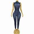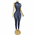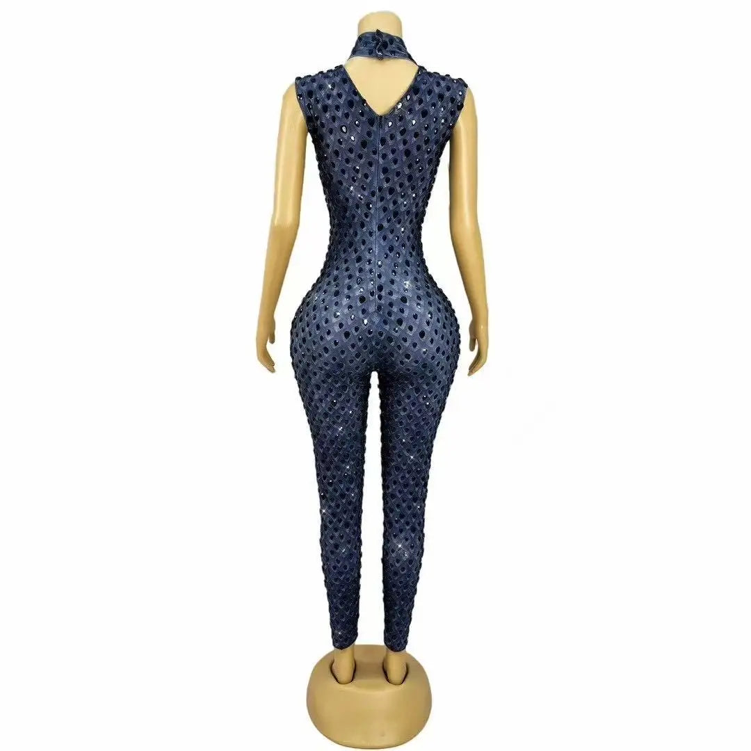 Sexy Stage Shining Black Rhinestones Jumpsuit Birthday Party Celebrate Fashion Show Oufit Singer Dancer Performance Costume