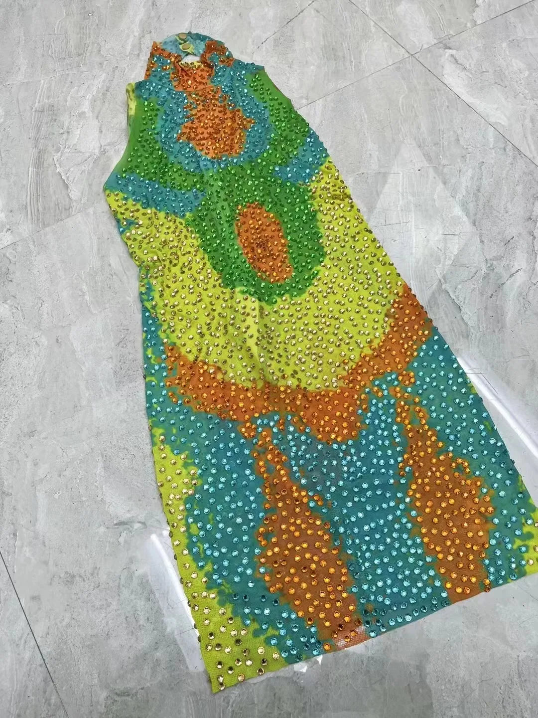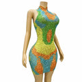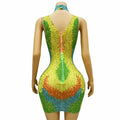 Stand out under every spotlight in this Sexy Stage Yellow‑Green Rhinestones Sleeveless Dress — a high-impact performance piece designed for dancers, singers, and party-goers who want bright color, eye-catching sparkle, and freedom of movement.