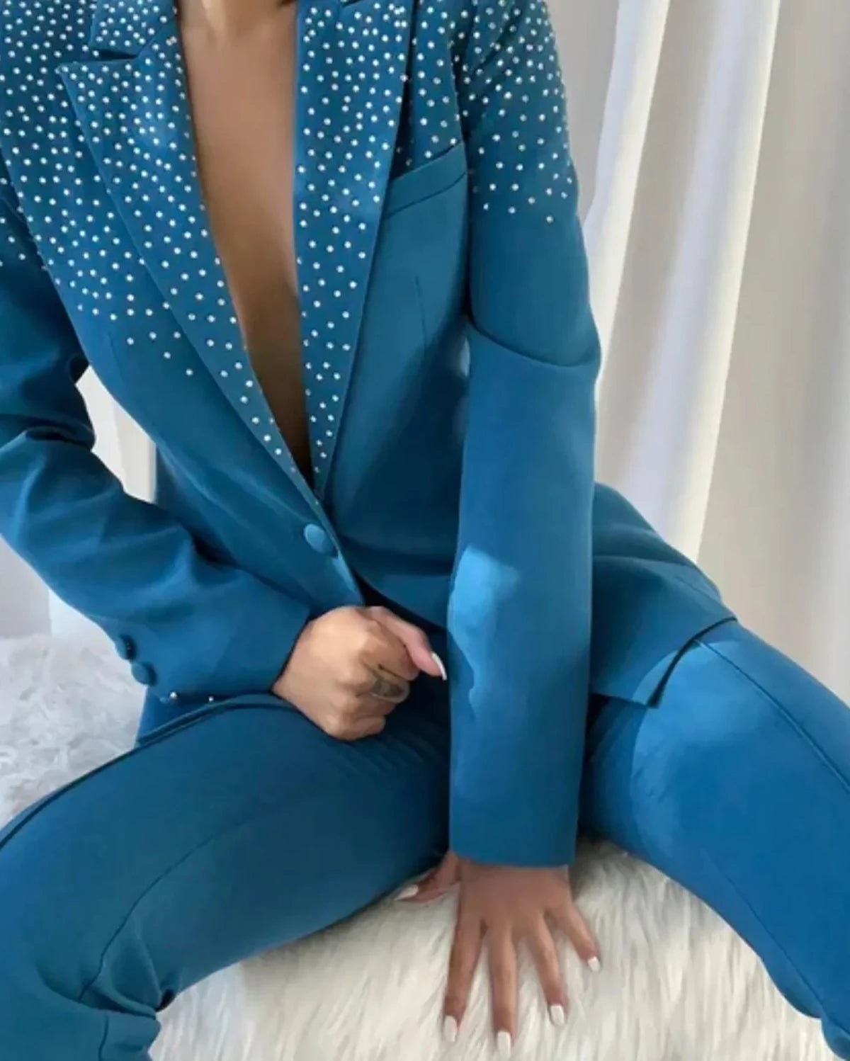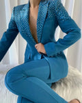 Make a statement with our Sexy Women’s Suit set, featuring a chic V-neck design and a tailored slim fit. This stylish two-piece ensemble includes a coat with long sleeves and a sophisticated peaked lapel, perfectly paired with fitted pants. Ideal for parties, proms, or any special occasion, this custom-made outfit ensures a flattering silhouette that exudes confidence and elegance.
