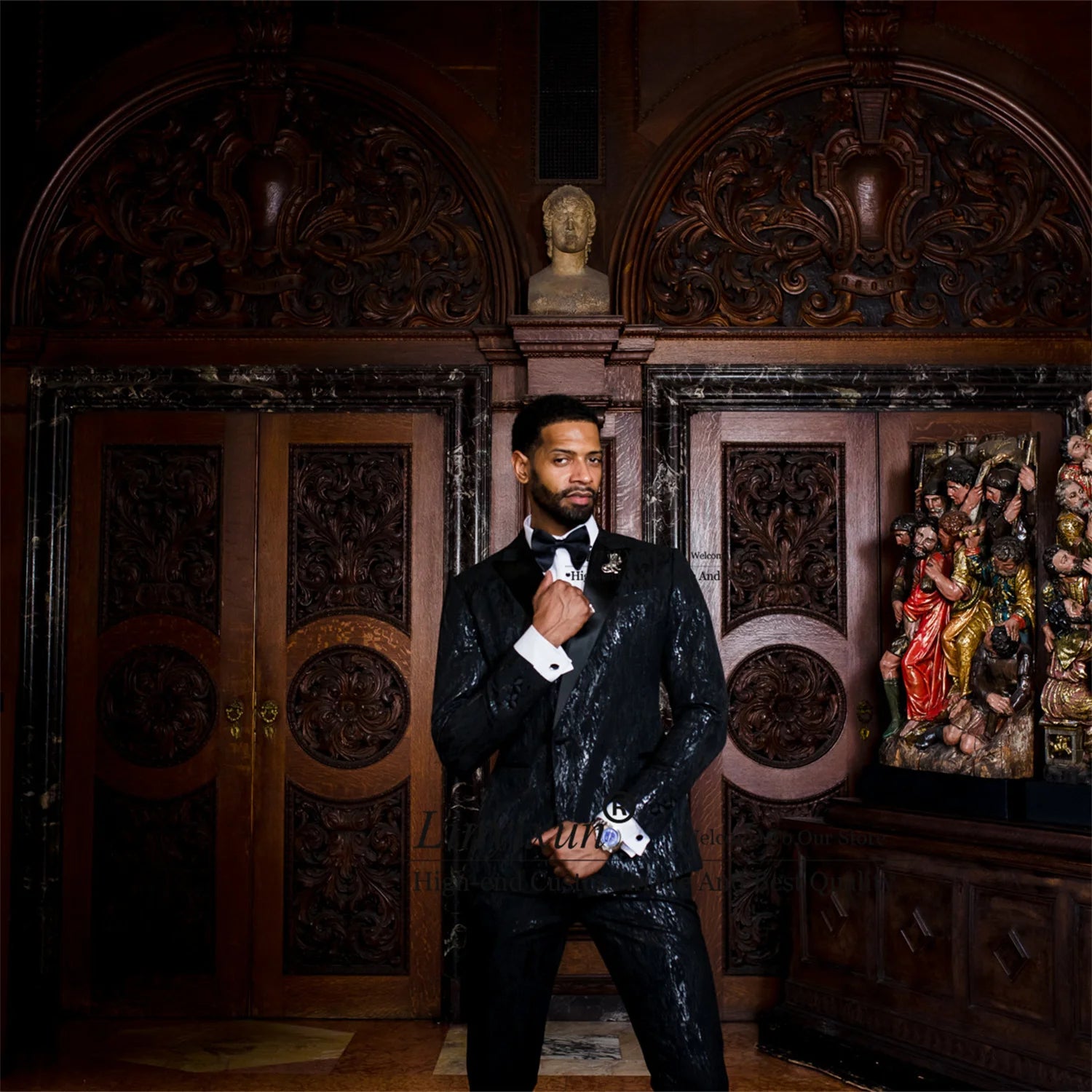 Shinny Sequin Black Mens Suits for Wedding 2 Pieces Set Customized Groom Tuxedos Slim Fit Male Prom Blazer