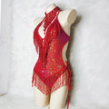 Shiny Costume for Women Red Beading Sequin Tassel One-Piece Bodysuit Sexy Clubwear Party Outfit Stage Performance Dance Clothes