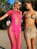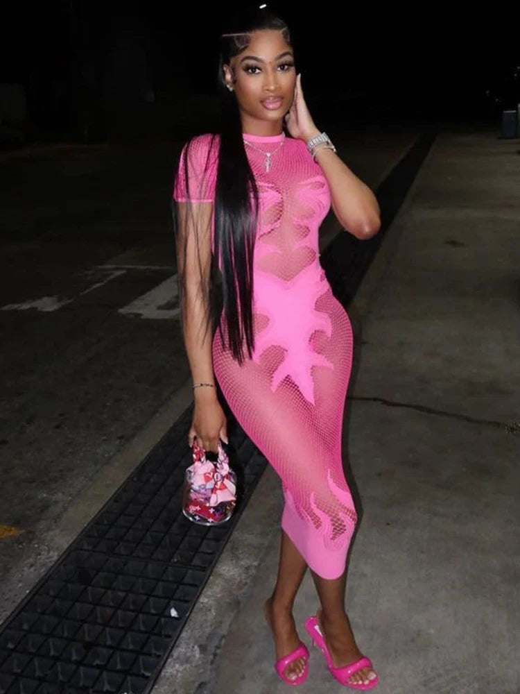Step into the spotlight with this See-Through High Stretch Long Dress for Women. Featuring a trendy O-neck and short sleeves, this slim bodycon dress hugs your curves with its ultra-stretchy, sheer fabric for a daring yet elegant look. Perfect for club nights and parties, this sexy robe-style gown combines comfort and style, ensuring you feel confident and unforgettable wherever you go.