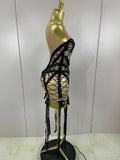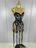Sparkle Sequins Embroider Sparking Diamonds Long Tassel Sleeveless Mini Dress Women Red Carpet Goddess Stage Performance Costume