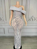 Sparkling Pearls Rhinestone Evening Dress Women Birthday Party Festival Dresses Performance Photoshoot Stage Wear Outfit