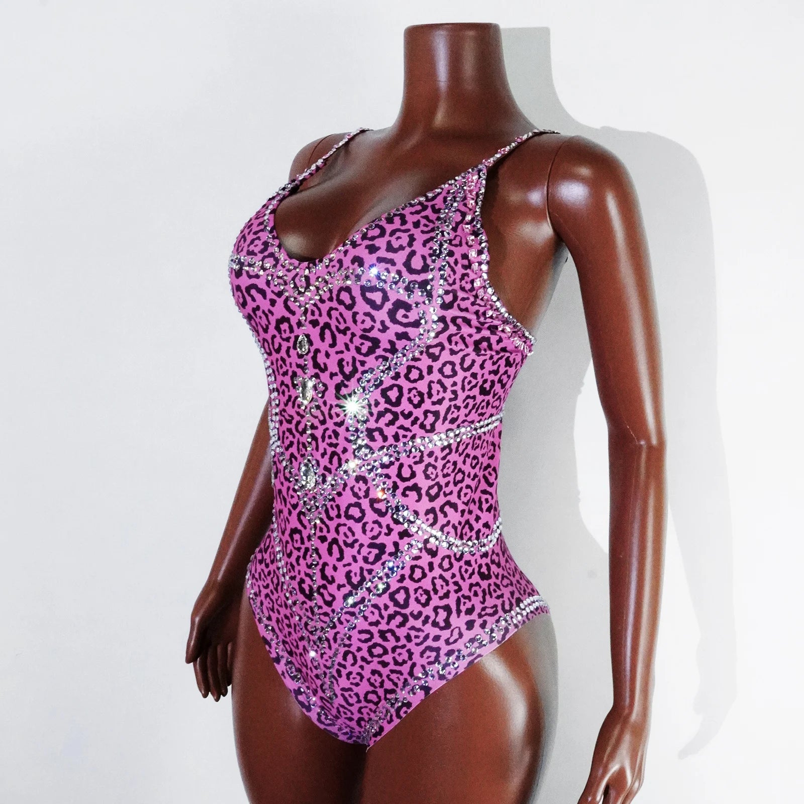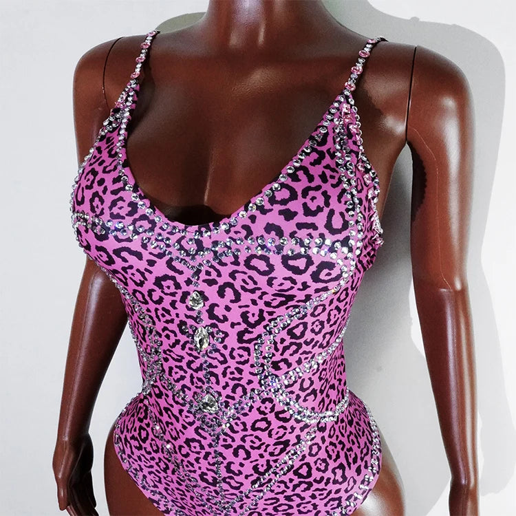 Make a bold entrance with this sparkling pink leopard sequin stage costume. Designed for women, this sleeveless bodycon dress hugs your curves and features a vibrant, eye-catching print. Perfect for clubwear, parties, dance performances, or a memorable night out, this dazzling outfit ensures you’ll stand out and shine wherever you go.