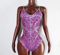 Sparkling Pink Leopard Sequin Stage Costume Women Sleeveless Bodycon Clubwear for Party Dance Performance Night Out
