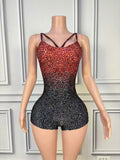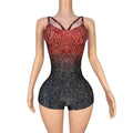 Sparkly Black Red Rhinestones Bodysuit for Women Sexy Sleeveless Nightclub Performance Dance Costume Stage Photoshoot Wear
