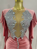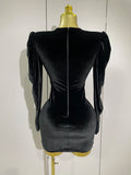 Sparkly Crystals Sexy Mesh Black Velvet Short Dress Women Elegant Evening Prom Luxury Birthday Party Dresses Stage Costume