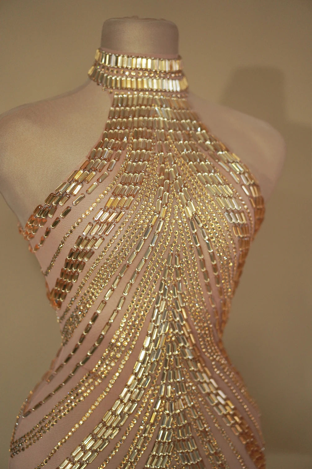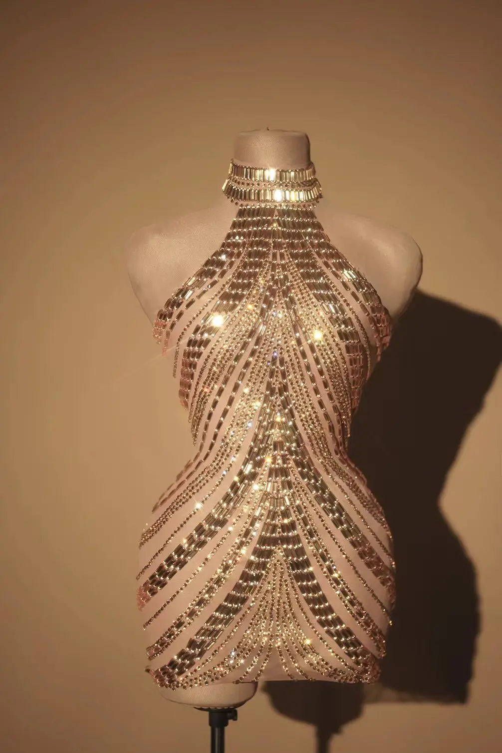 Glamorous Rhinestone Bodycon Dress for Women - Sparkly Stage Performance Gown, Perfect for Prom, Birthday Parties, and Night Out Events