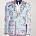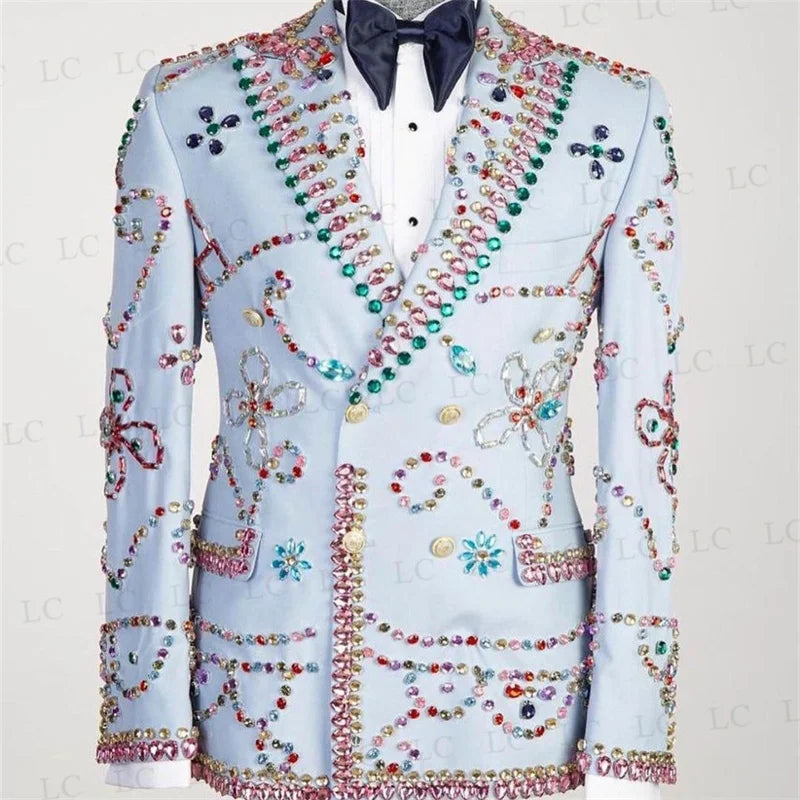 Men's Light Blue Tuxedo Jacket with Multicolor Jewel Embellishments and Bow Tie