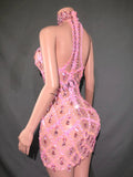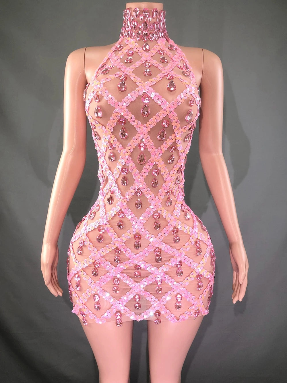 Turn every entrance into a showstopper with this sparkly pink rhinestone short dress for women. Featuring a sexy sleeveless design and sheer, transparent mesh, this dress dazzles under the lights, making it perfect for evening events, proms, birthday celebrations, and stage performances. Whether you’re a singer, performer, or party guest, this glamorous dress ensures all eyes are on you as you shine with confidence and style.
