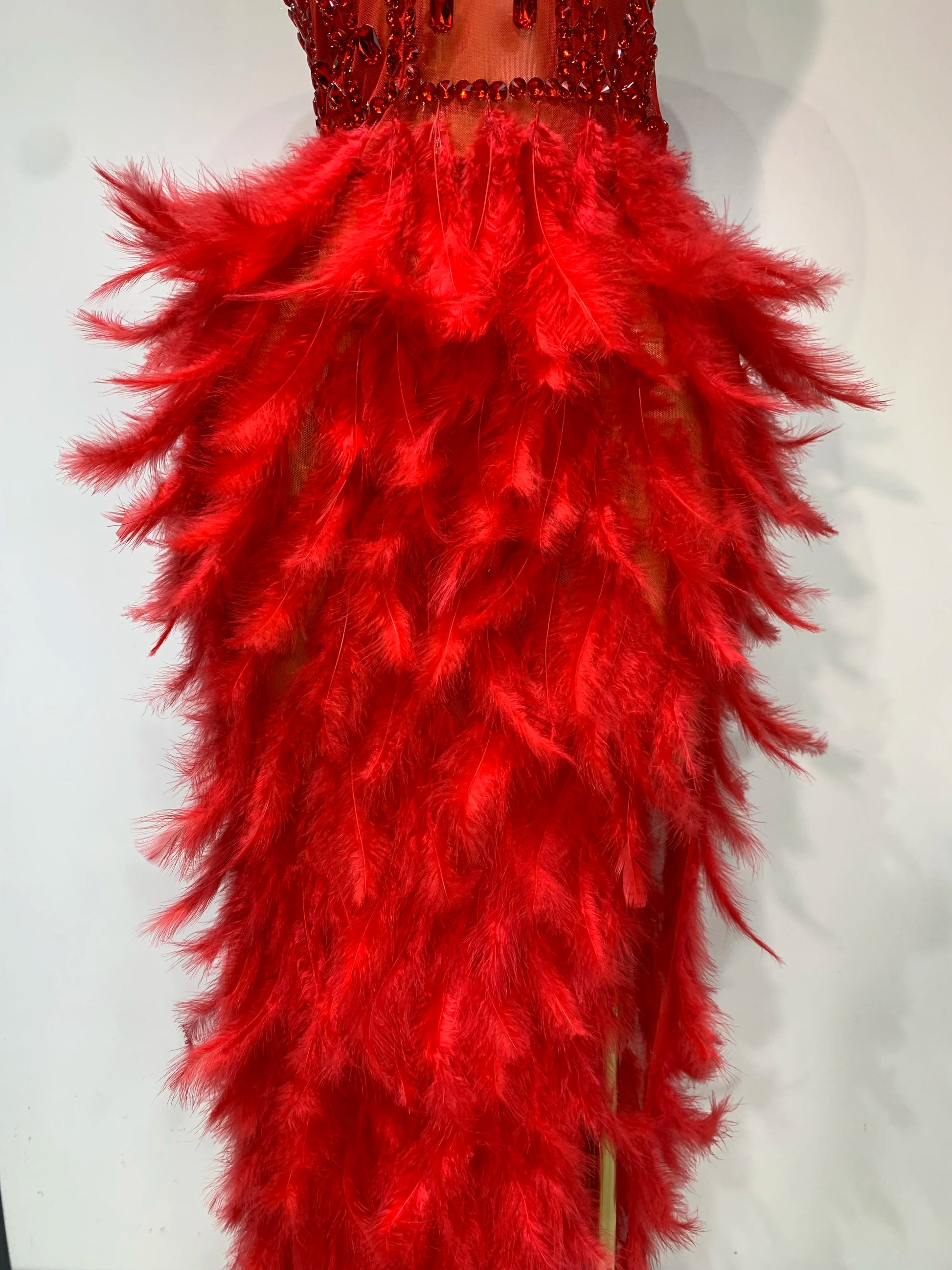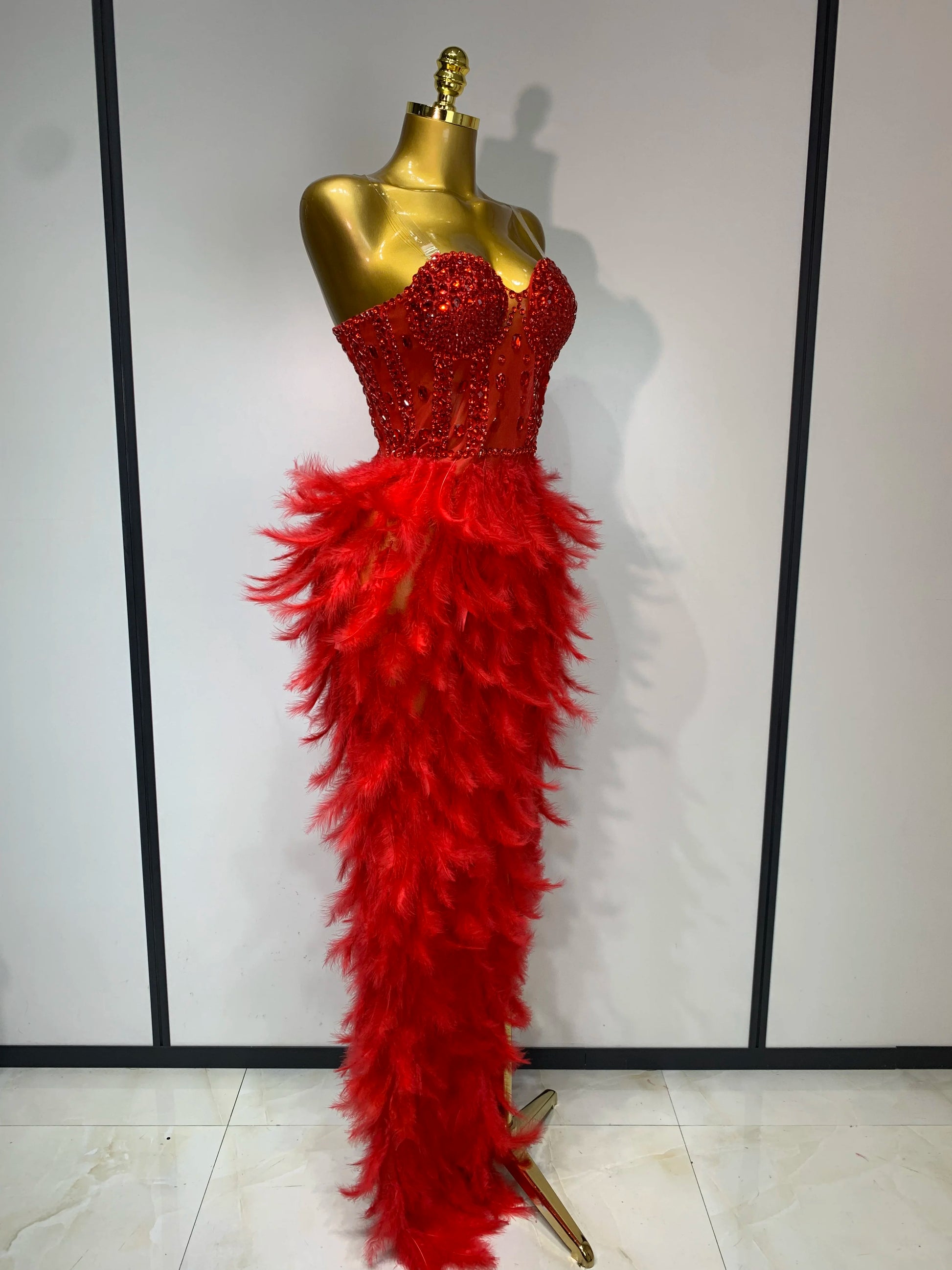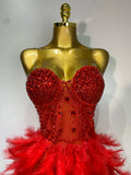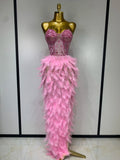 Sparkly Rhinestone Feather Mesh Long Dress Women Sexy Elegant Evening Party Luxury Birthday Photo Shoot Performance Costume