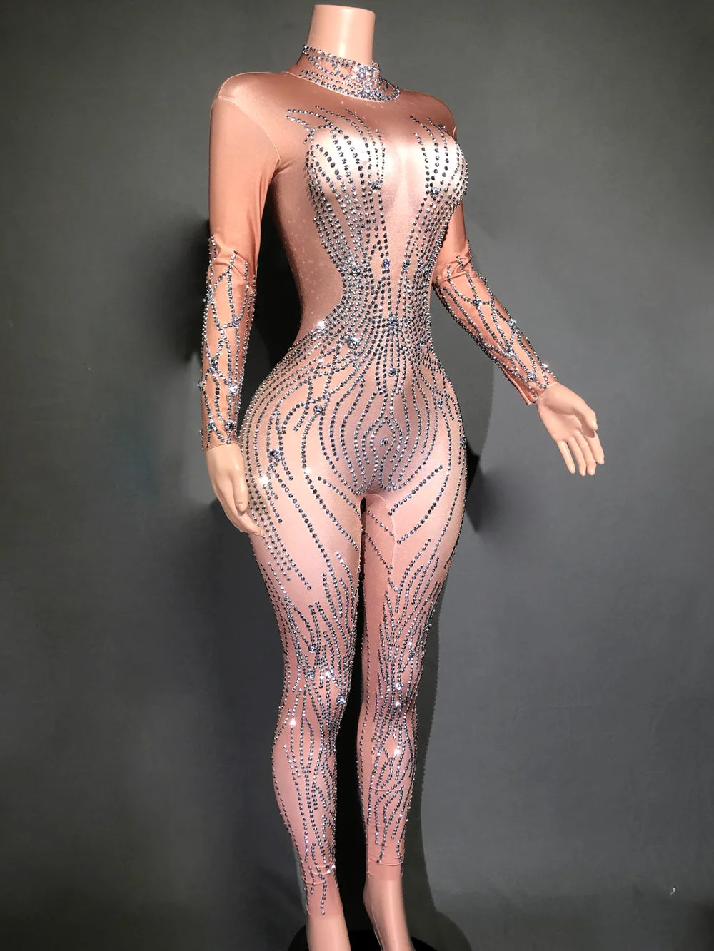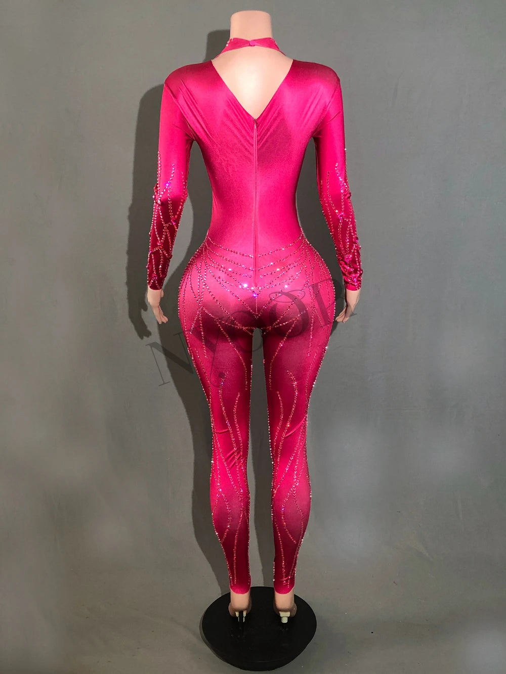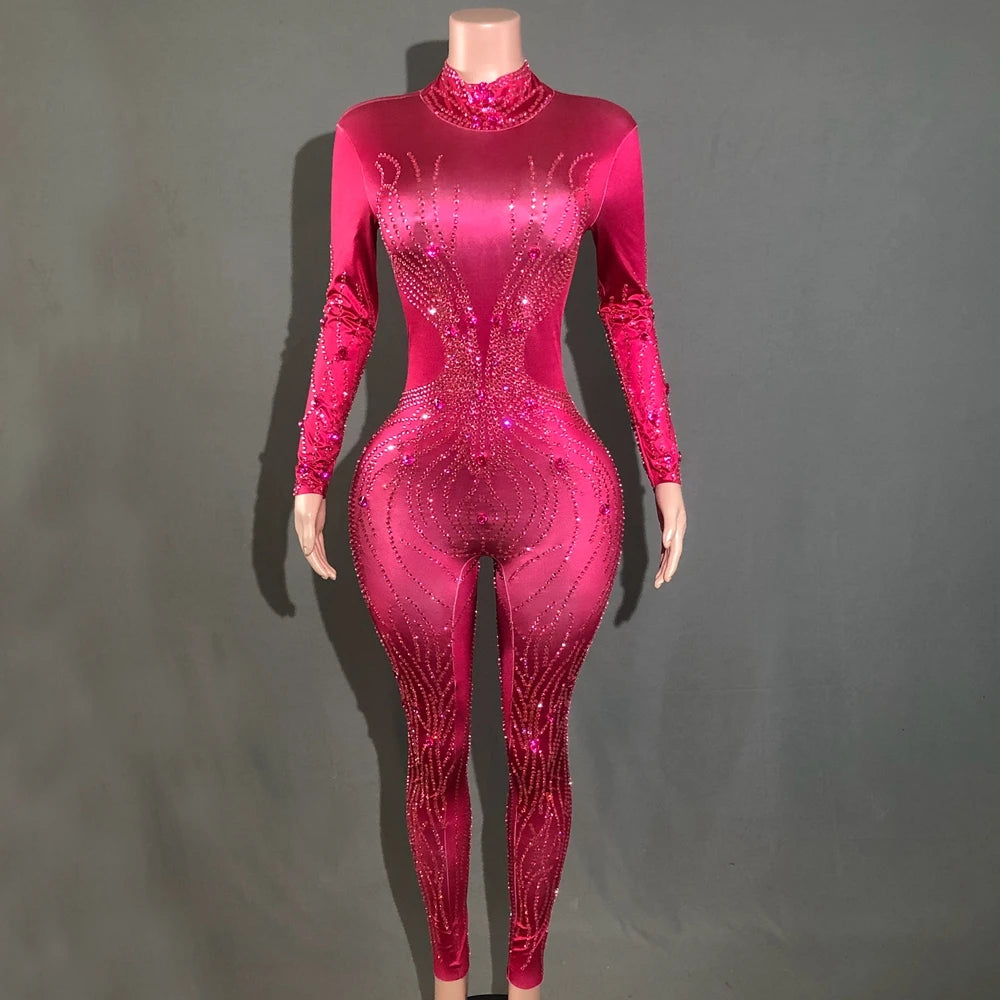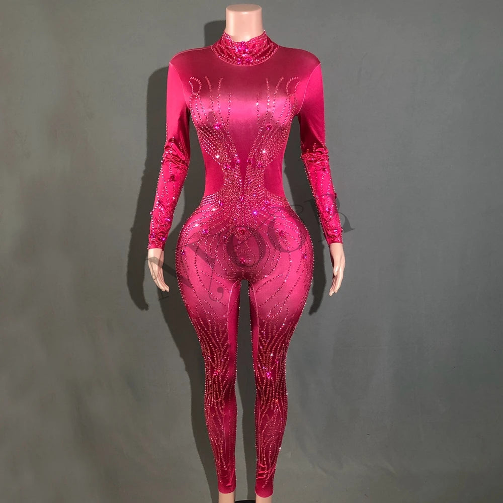 Sparkly Rhinestone Jumpsuit for Women Sexy Performance Dance Costume Singer Dancer Show Stage Wear Nightclub Outfit