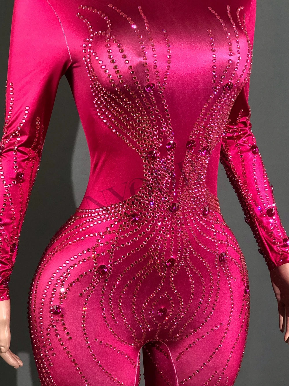 Dazzle the audience with this sparkly rhinestone jumpsuit, designed specifically for women who love the spotlight. Perfect for performances, shows, and nightclub events, this sexy dance costume features shimmering rhinestones that catch the light from every angle. Whether you're a singer, dancer, or stage performer, this eye-catching outfit ensures all eyes are on you for an unforgettable performance.