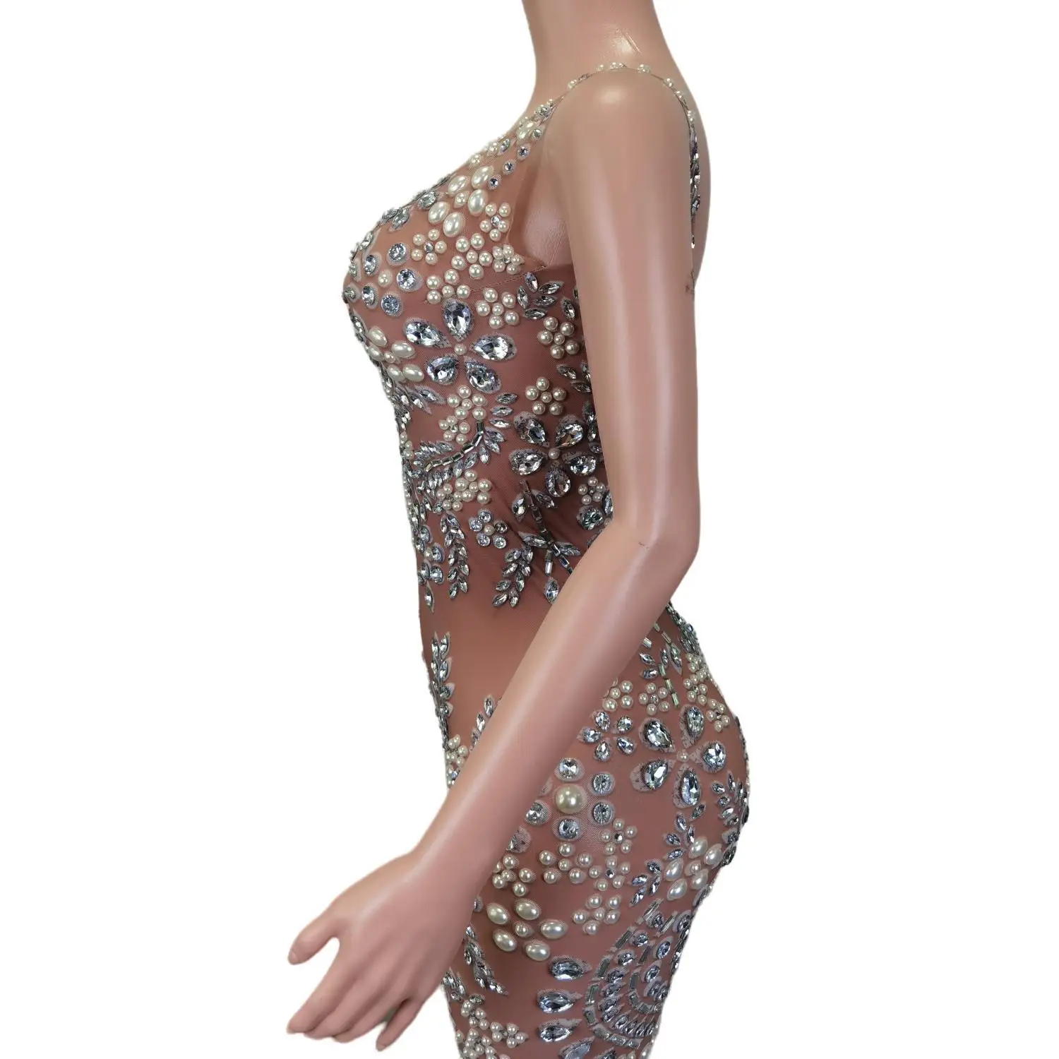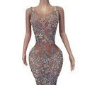 Sparkly Rhinestone Sleeveless Sheer Dress for Women Crystals Evening Party Birthday Performance Gowns Drag Queen Costume Meihua