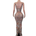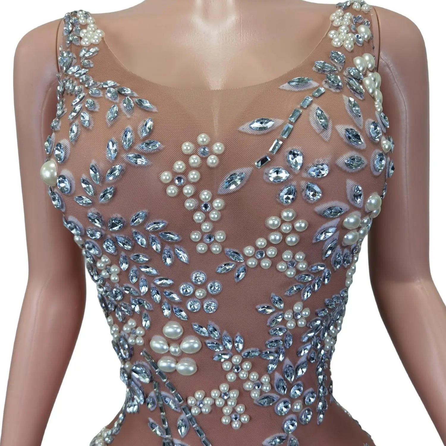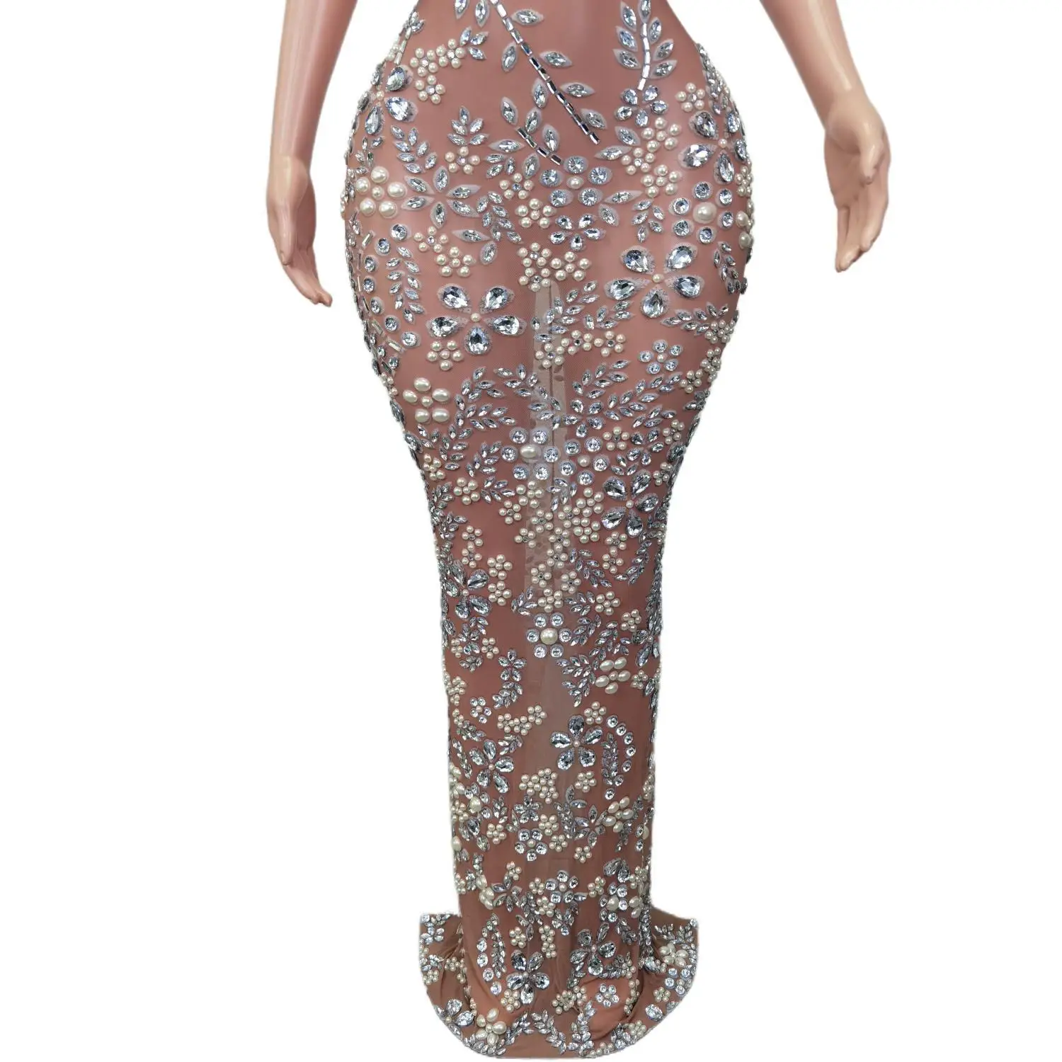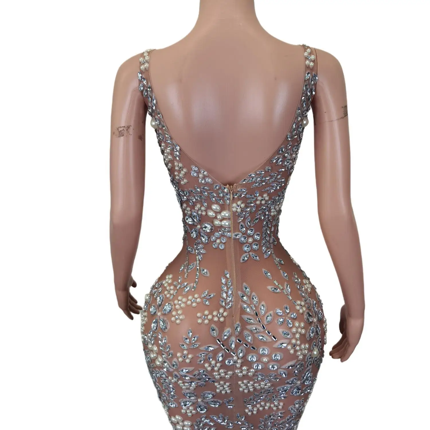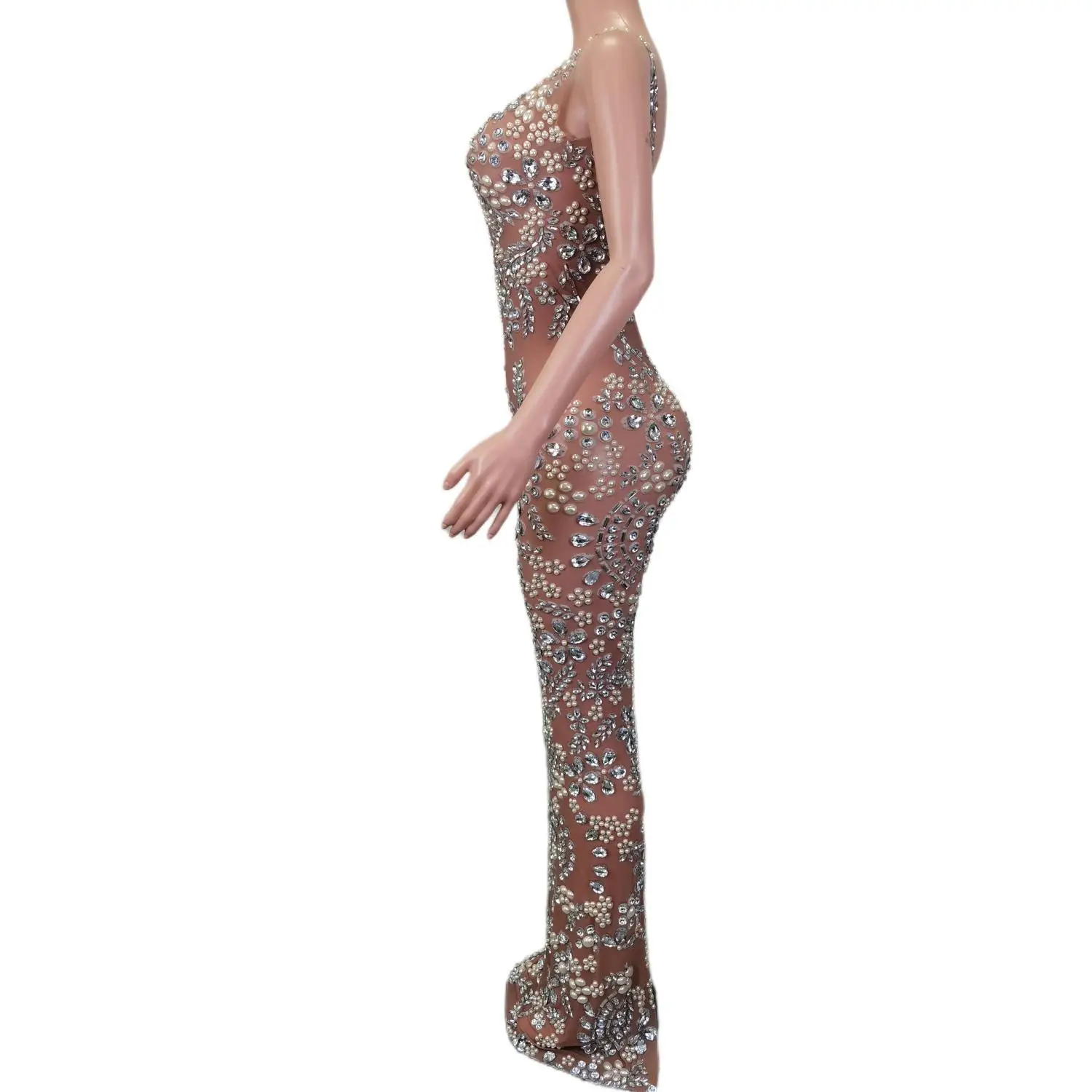 Glamorous Rhinestone Embellished Sheer Evening Gown for Women Perfect for Parties, Birthdays, and Performances