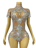 Sparkly Rhinestones Bodysuit for Women Sexy Mesh Transparent Outfit Nightclub Performance Dance Costume Singer Show Stage Wear