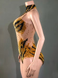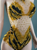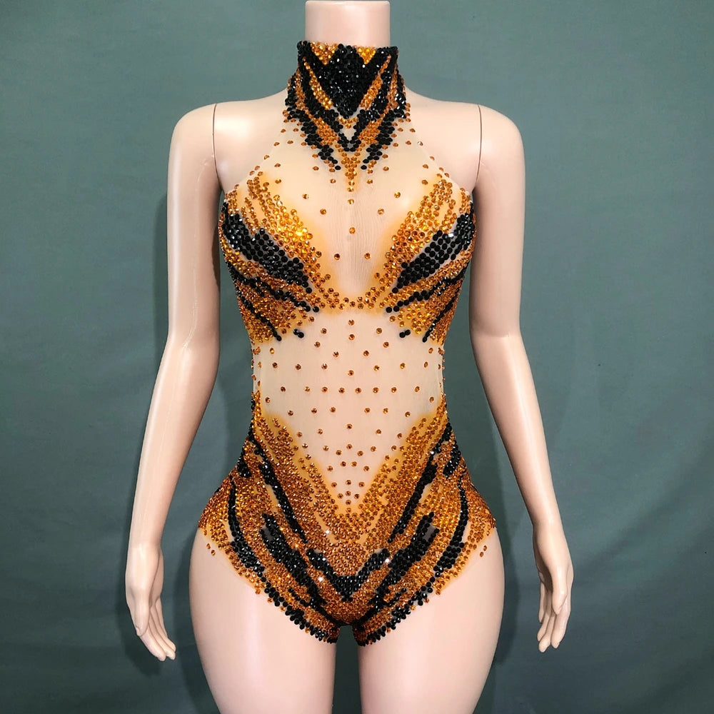Dazzle the crowd with this sparkly rhinestone bodysuit, designed for women who want to make a bold statement. Featuring sexy, transparent mesh and intricate rhinestone embellishments, this performance costume is perfect for singers, dancers, and nightclub stage wear. Its curve-hugging fit not only flatters your figure but also ensures you stand out under the lights, making it the ultimate choice for unforgettable performances and show-stopping moments.