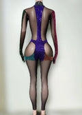 Sparkly Rhinestones Jumpsuit for Women Sexy Mesh Transparent Nightclub Outfit Birthday Party Stage Wear Show Performance Costume