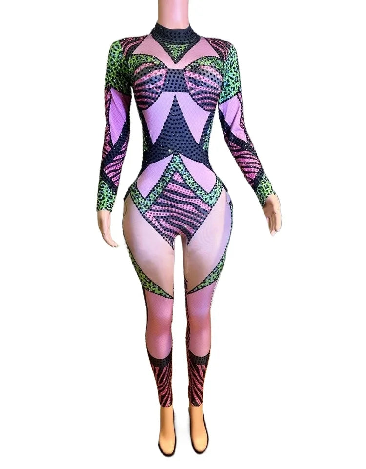 Sparkly Rhinestones Jumpsuit for Women Sexy Nightclub Outfit Birthday Party Bodysuit Stage Wear Show Performance Costume