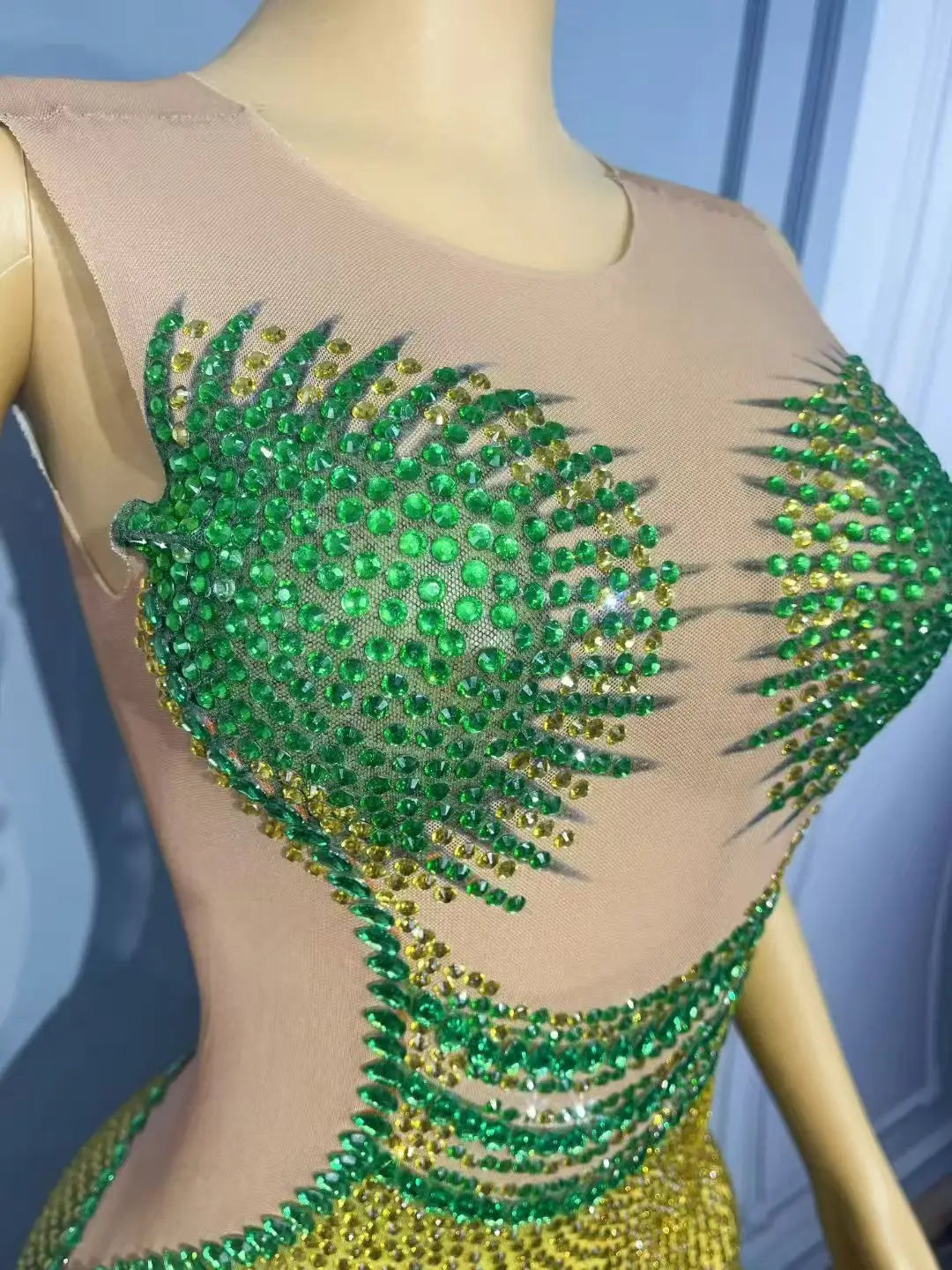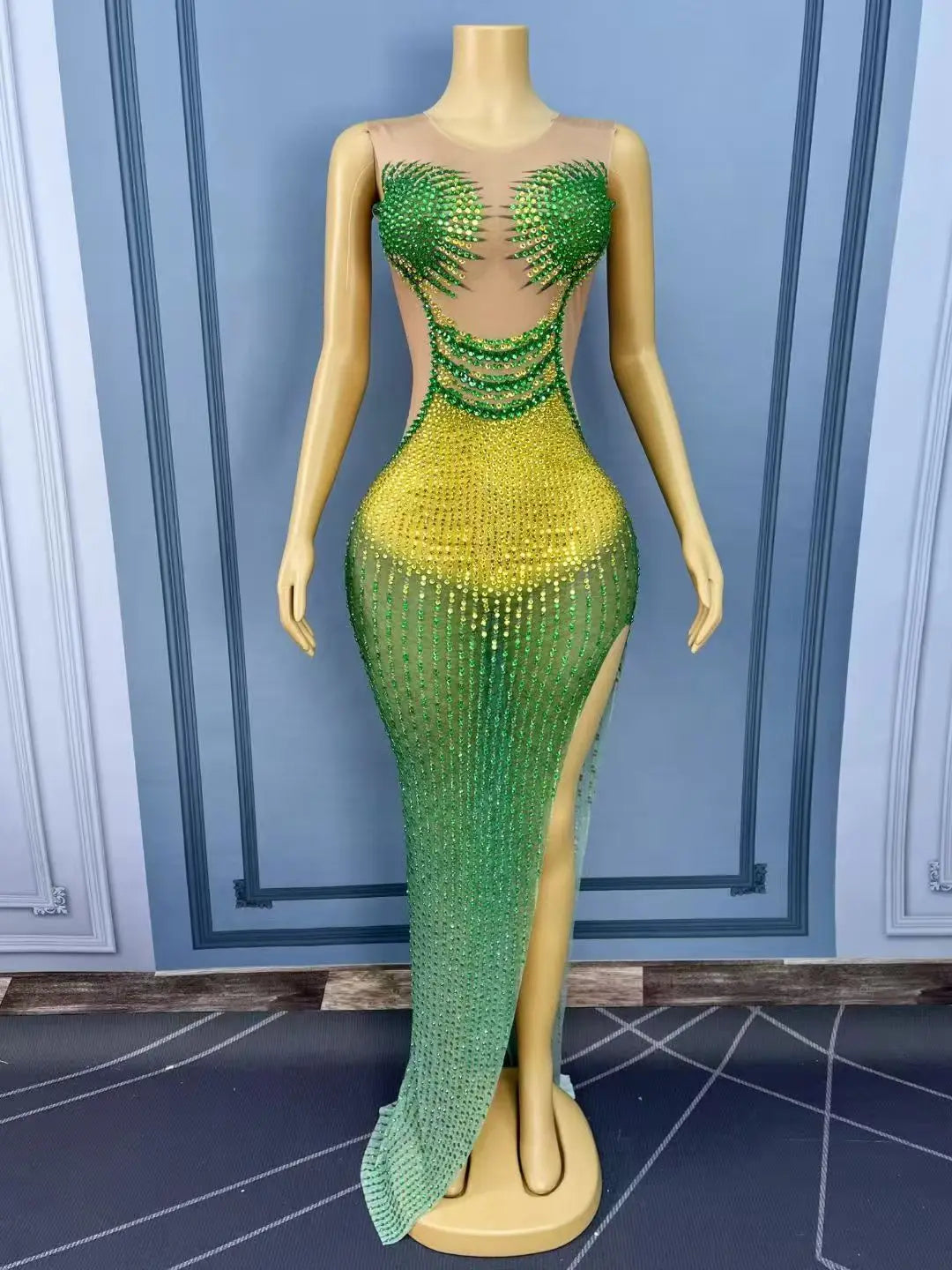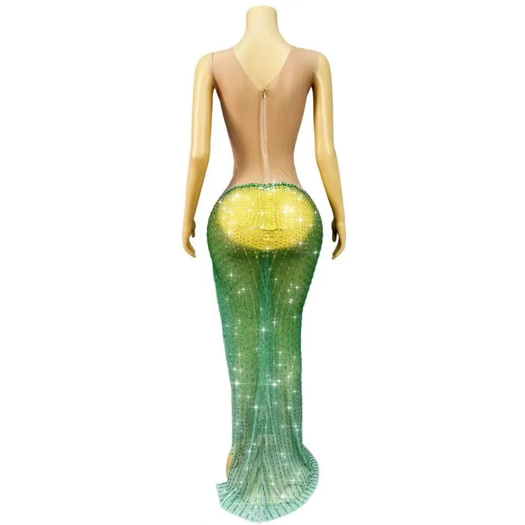 Make every entrance glittering and unforgettable with this Sparkly Rhinestones Sleeveless Long Dress — a seductive, camera‑ready gown crafted to combine sheer allure, precision sparkle, and stage‑friendly construction for birthdays, parties, photoshoots, and live performances.