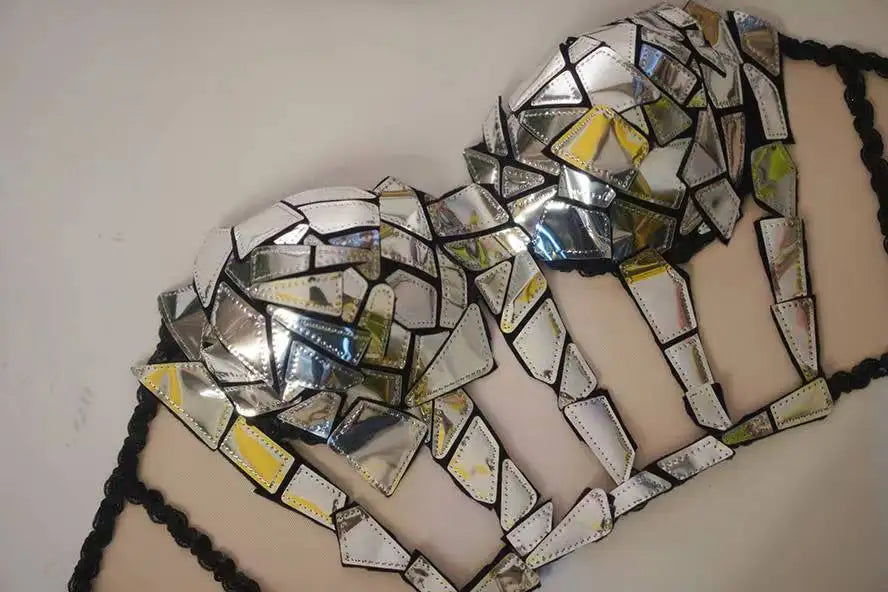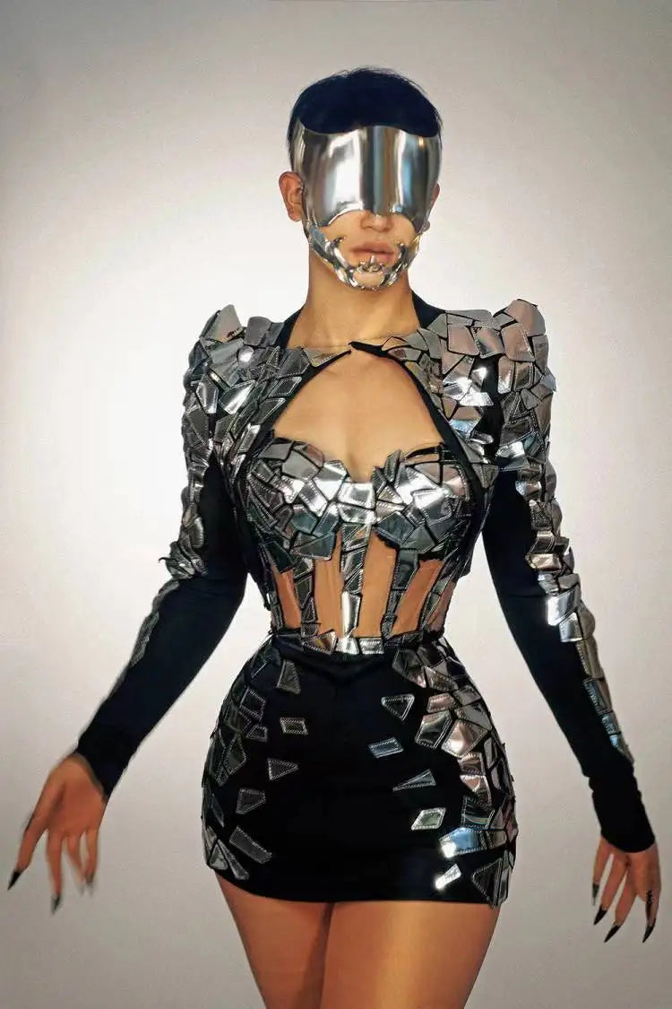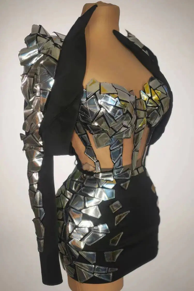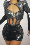 Glamorous Silver Mirror Cutout Mini Dress for Stunning Parties, Performances, and Celebrations