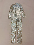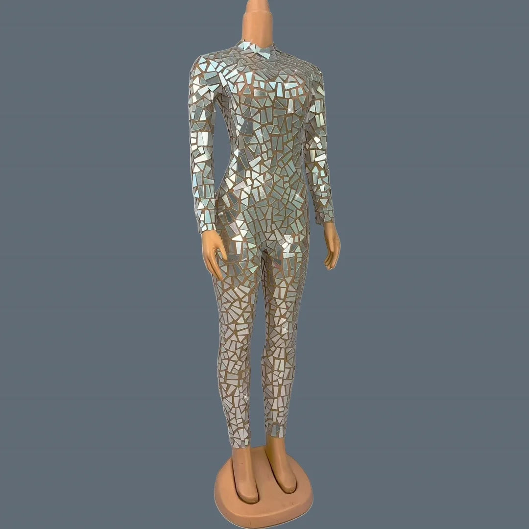Sparkly Silver Sequins Mirrors Jumpsuit Sexy Women Night Party Stage Performance Wear High-end Tight Fitting Jumpsuit