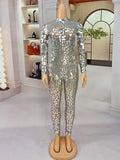 Dazzle the crowd in this high-end, tight-fitting jumpsuit for women, featuring sparkly silver sequins and mirror embellishments for maximum shine. This sexy, form-hugging outfit is designed to catch the light and turn heads at night parties, stage performances, and any special event where you want to stand out. With its glamorous look and comfortable stretch fit, this jumpsuit is the ultimate choice for those who love to make a statement.