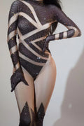 Sparkly Stretchy Rhinestone Jumpsuits for Women Pink Green Bodysuit Pole Dance Drag Queen Costume Performance Photoshoot Outfit