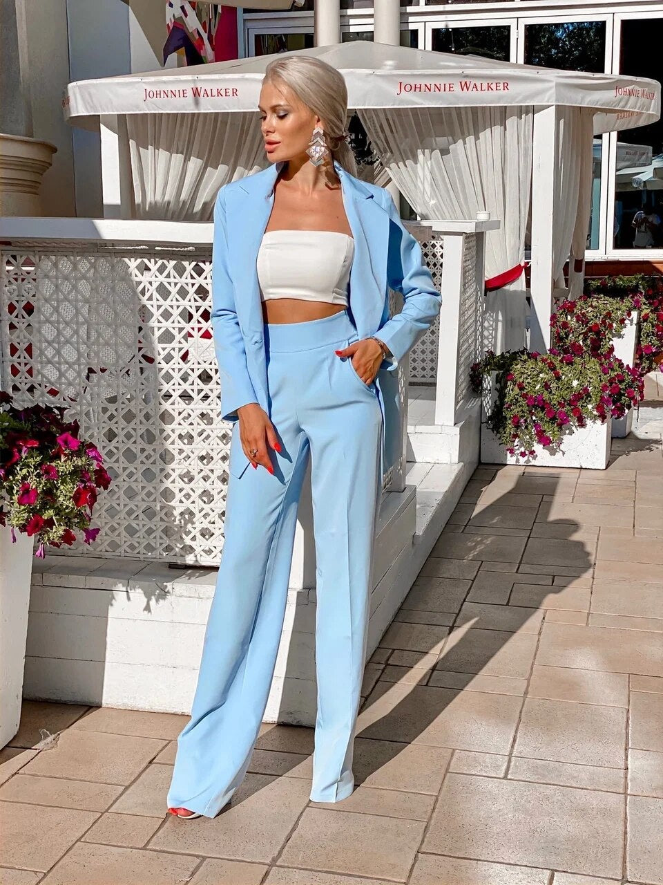 Sky Blue Celebrity Women Evening Suit 2 Pieces Mother of Bride Dress Party Prom Wear Pants Outfits for Wedding