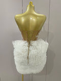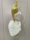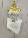 Stock Sexy White Lace Strapless Tops Ruffles Mini Skirt 2 PCS Set Women Evening Party Nightclub Singer Stage Performance Costume