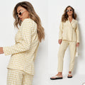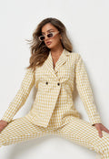 Summer Light Yellow Check Women Pants Suits Slim Fit Plaid Blazer Suit Ladies Prom Party Wedding Wear(Jacket+Pants)