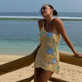 Summer Mini Dress Hollow Out Sling Sexy Dress Women Flower Slim Fit Off Shoulder Chic Female Knitted Crochet Beach Short Dress