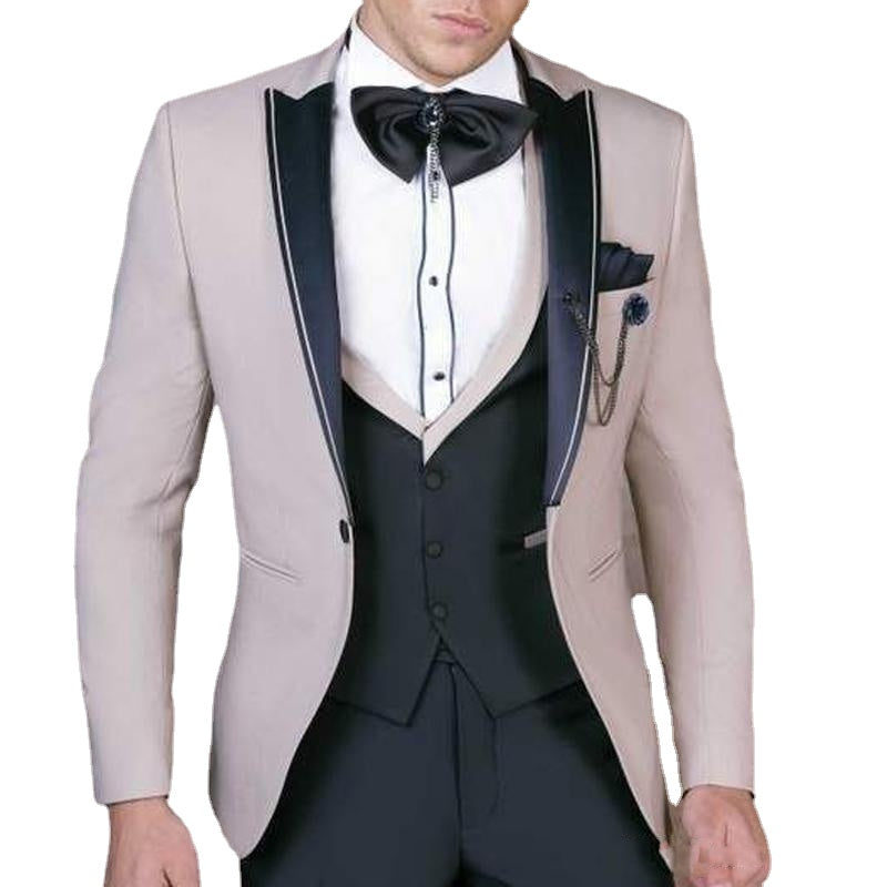 Groomsmen Peaked Lapel Groom Tuxedos Men Suits Wedding Best Man Blazer (Jacket+Pants+Tie+Vest) Custom Made