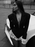 Tossy Lace Fashion Suit Jumpsuit Female Blazer Body Top V-Neck Slim Long Sleeve Sexy Cardigan Streetwear Women Black Rompers New